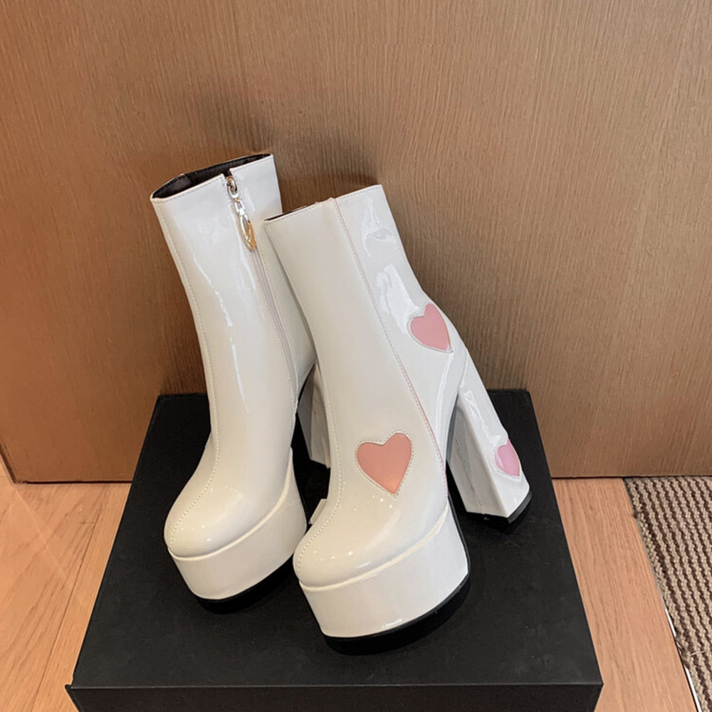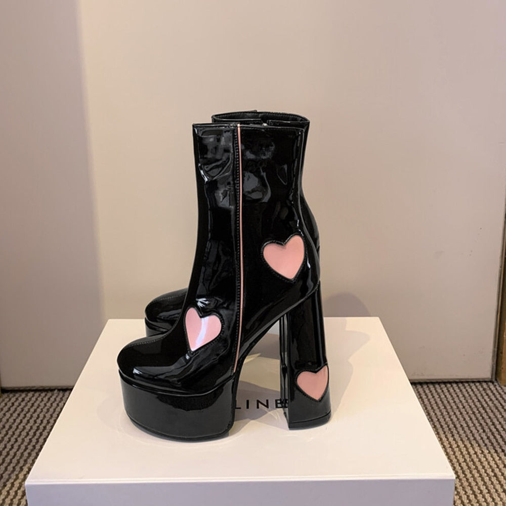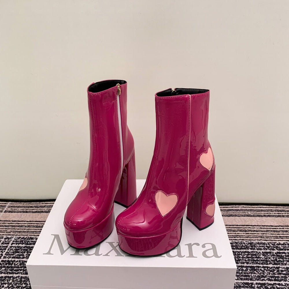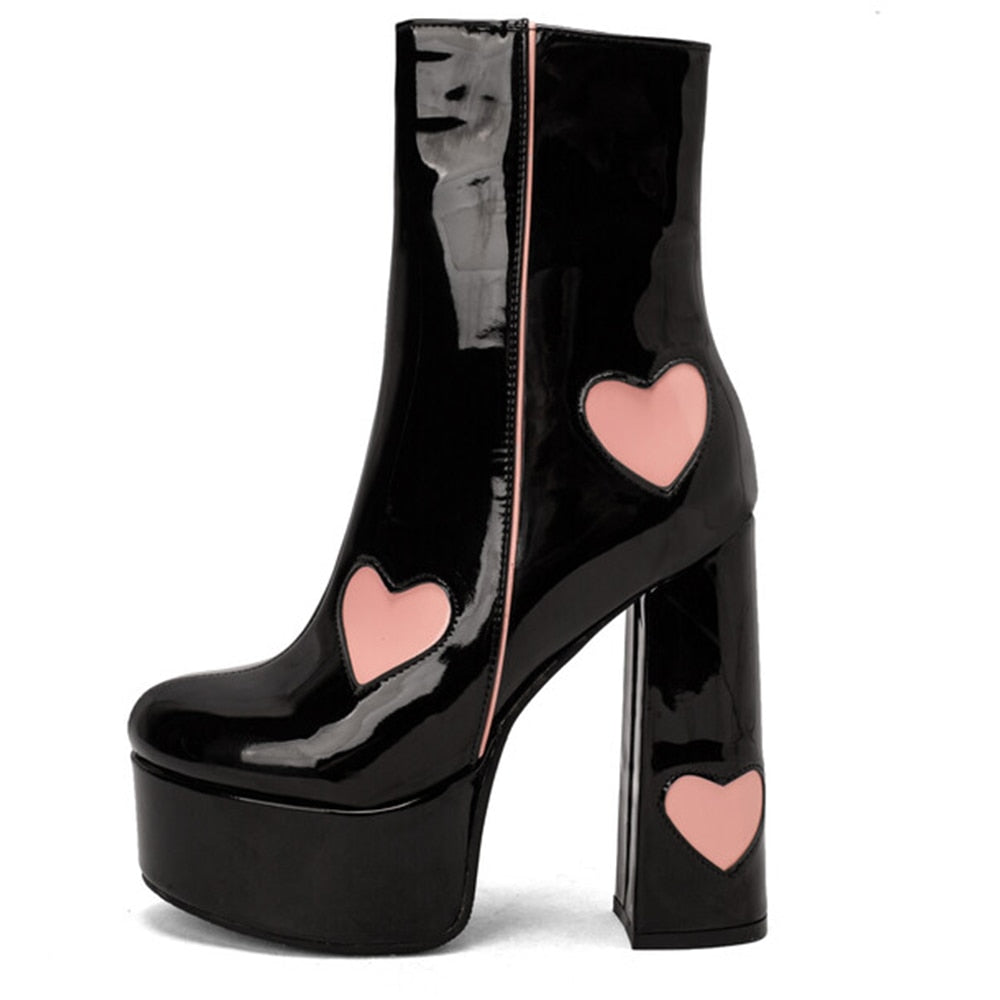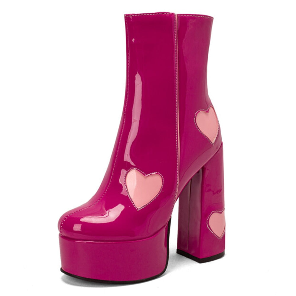 Showcase your individuality: With their hand-stitched heart pattern, high shine upper, and vibrant colors, these ankle boots allow you to express your unique style and make a bold fashion statement that captures attention and spreads love.