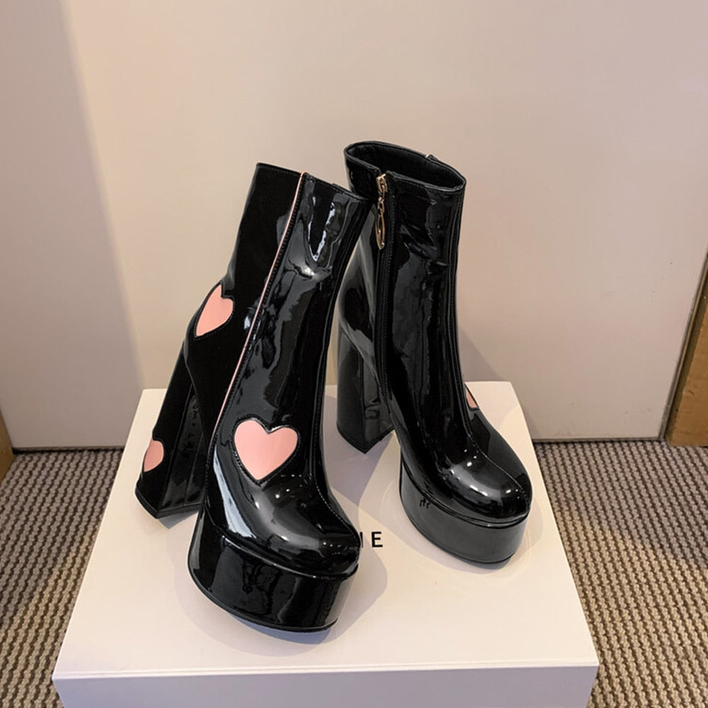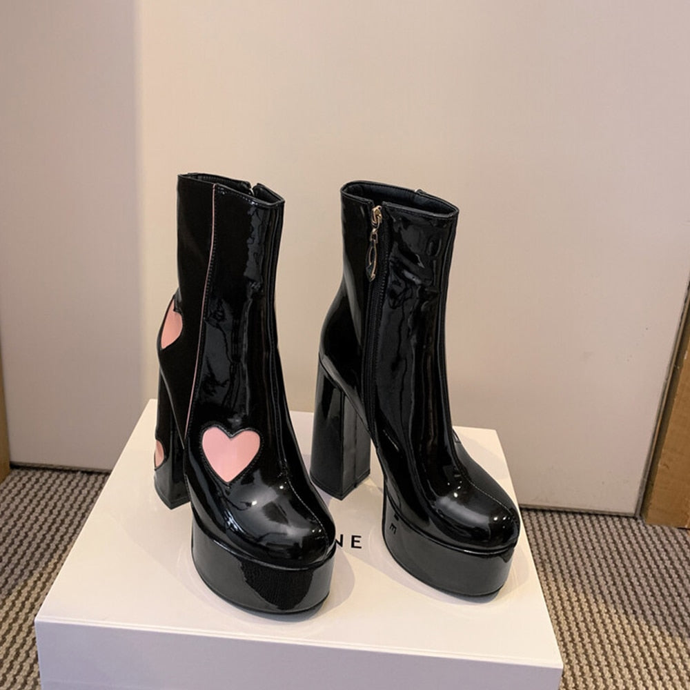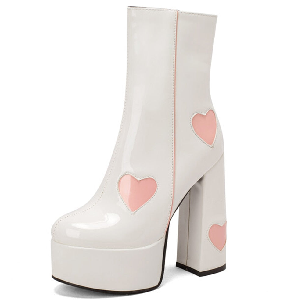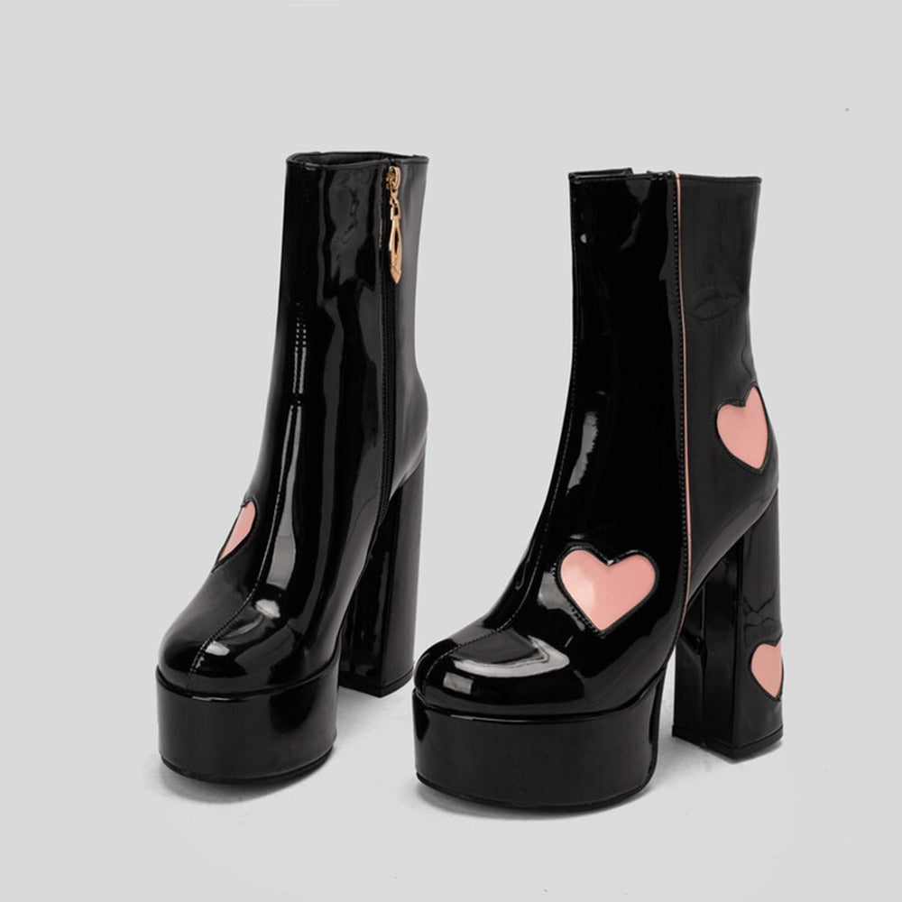 Showcase your individuality: With their hand-stitched heart pattern, high shine upper, and vibrant colors, these ankle boots allow you to express your unique style and make a bold fashion statement that captures attention and spreads love.