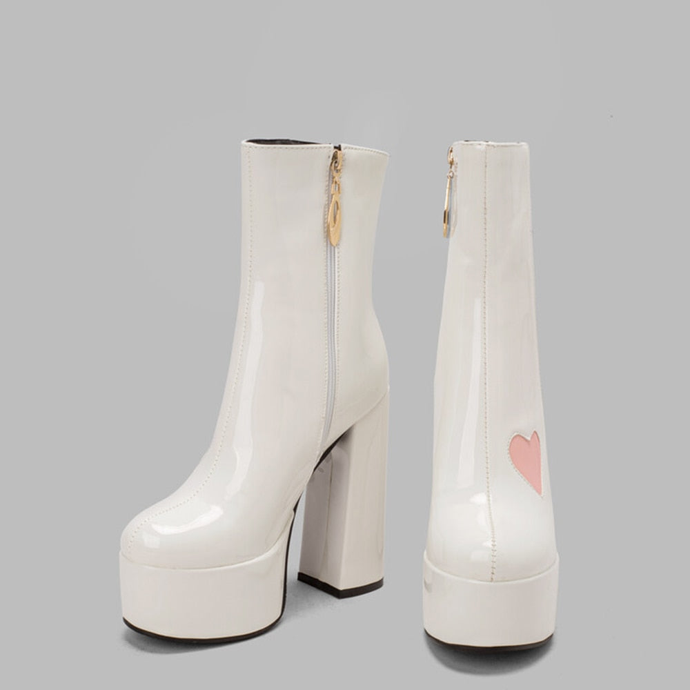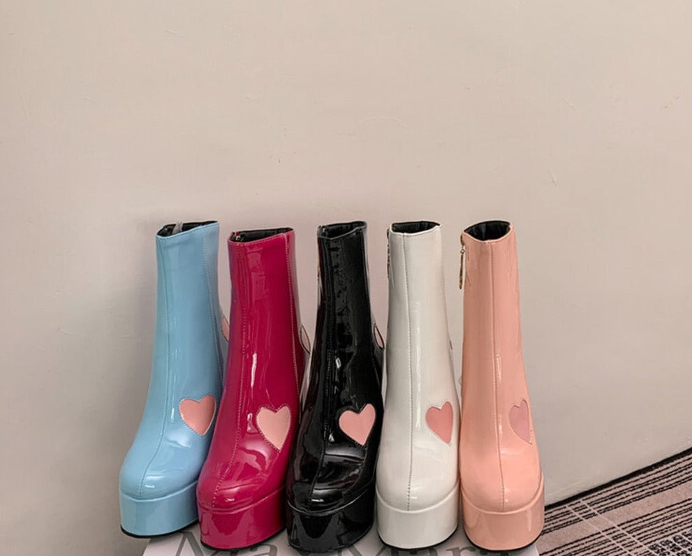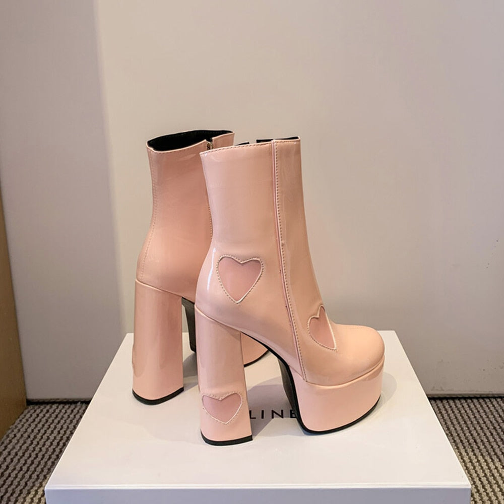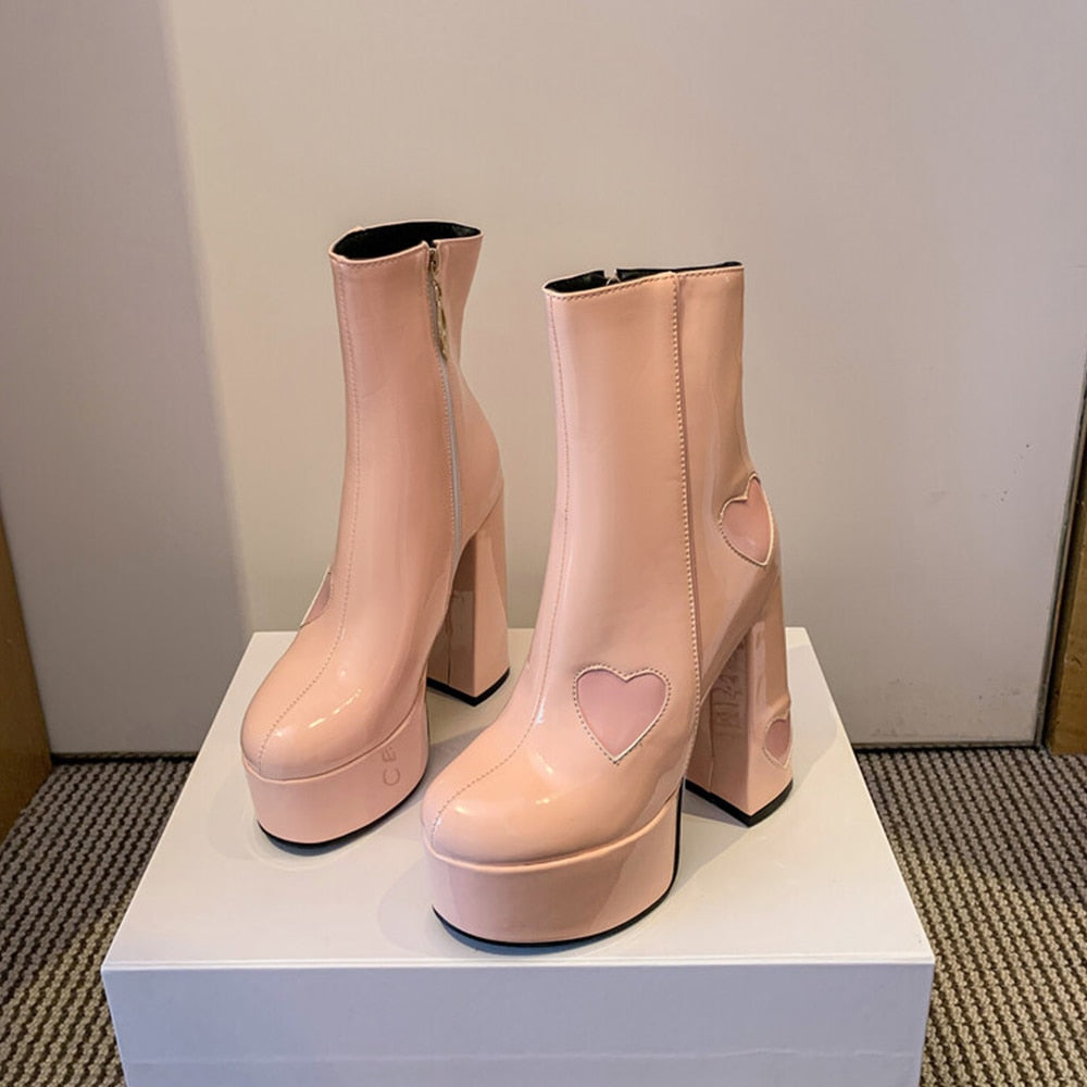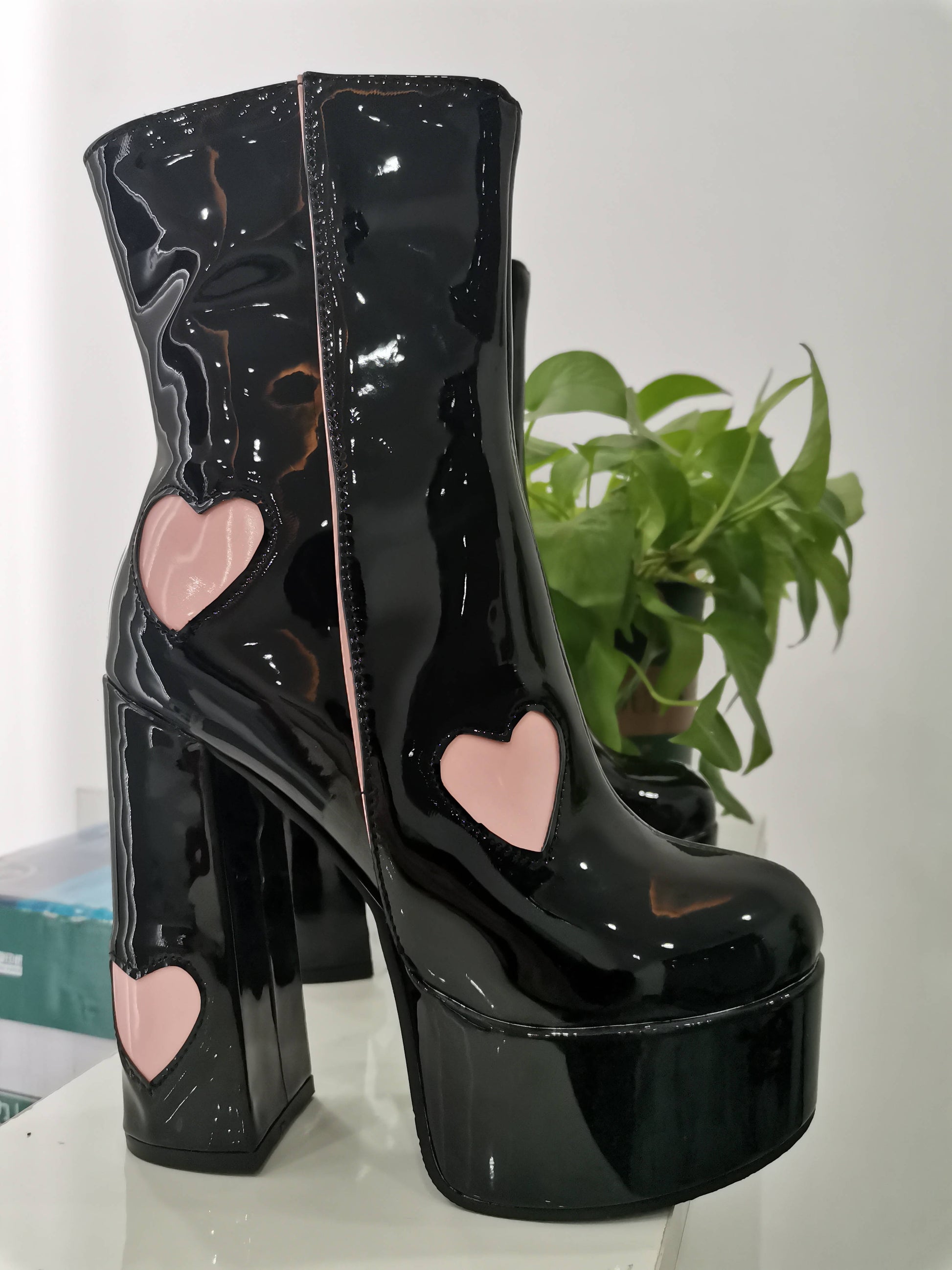 Showcase your individuality: With their hand-stitched heart pattern, high shine upper, and vibrant colors, these ankle boots allow you to express your unique style and make a bold fashion statement that captures attention and spreads love.