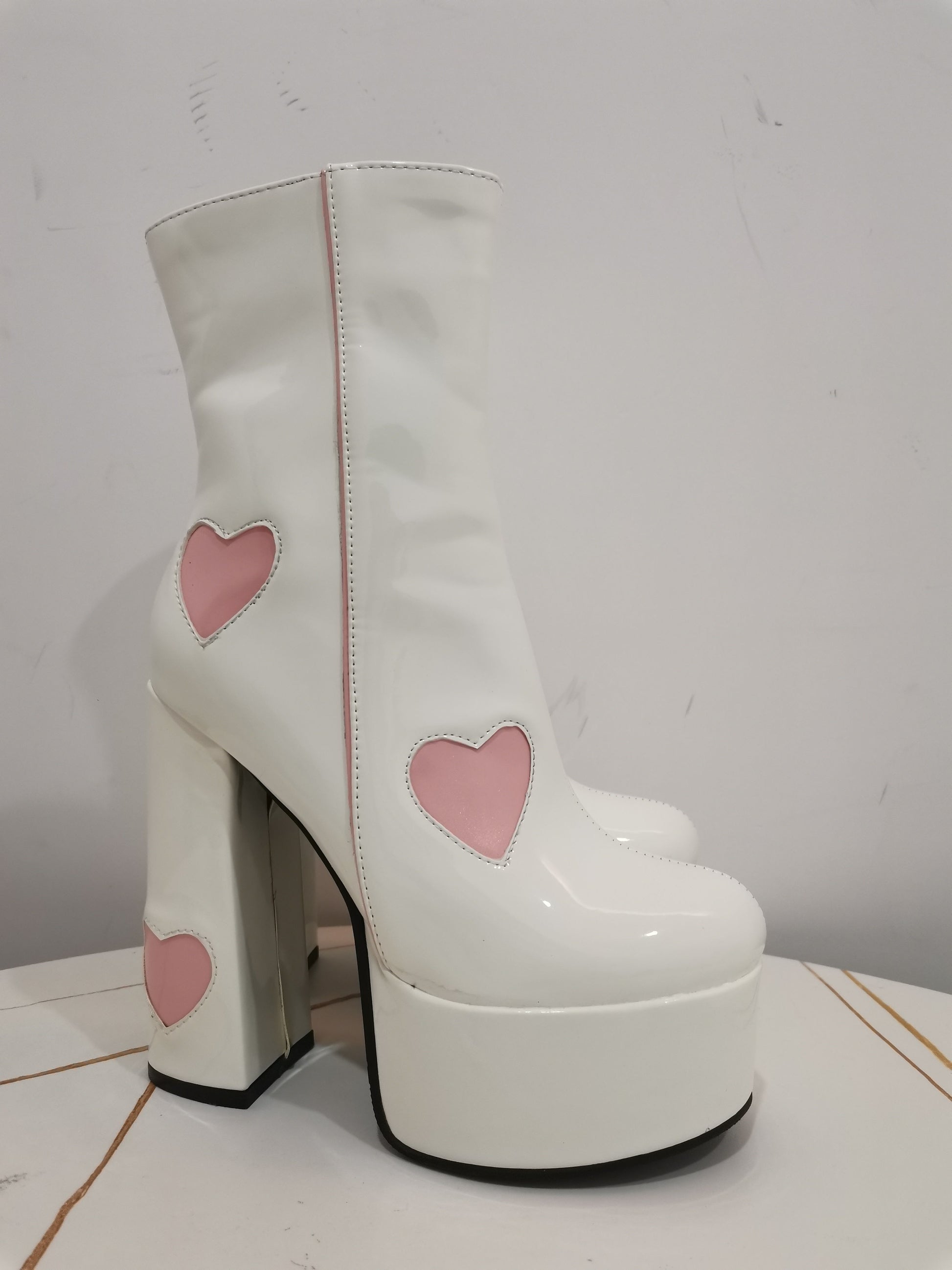 Hand-stitched heart pattern: These boots feature a charming heart pattern meticulously hand-stitched on the upper and heels, adding a romantic and whimsical touch to your footwear.