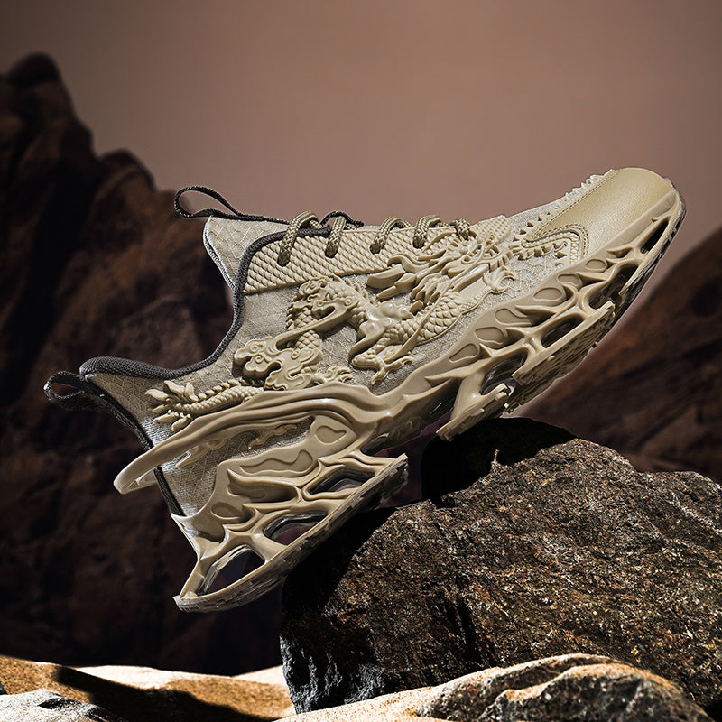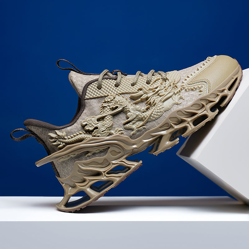 Raised and detailed dragon design wraps the shoe—symbolizing strength, wisdom, and dominance. -