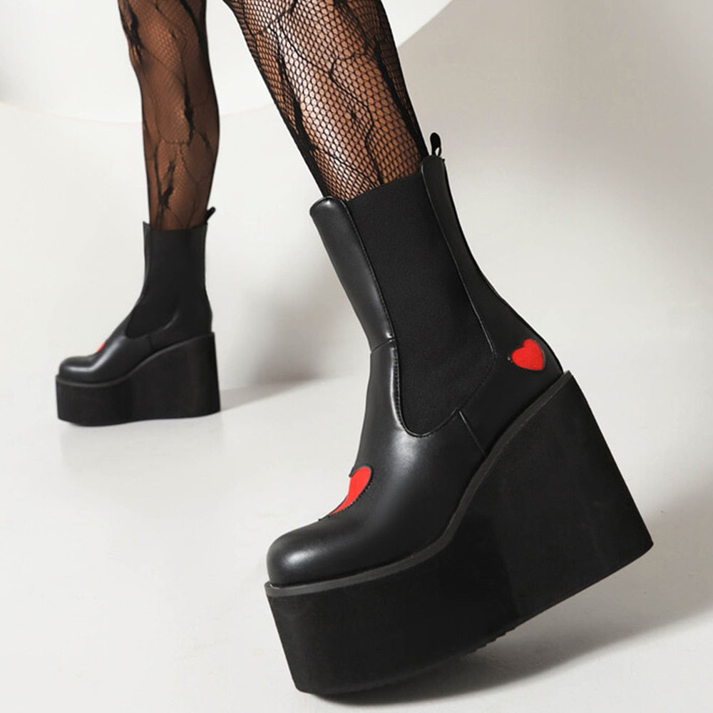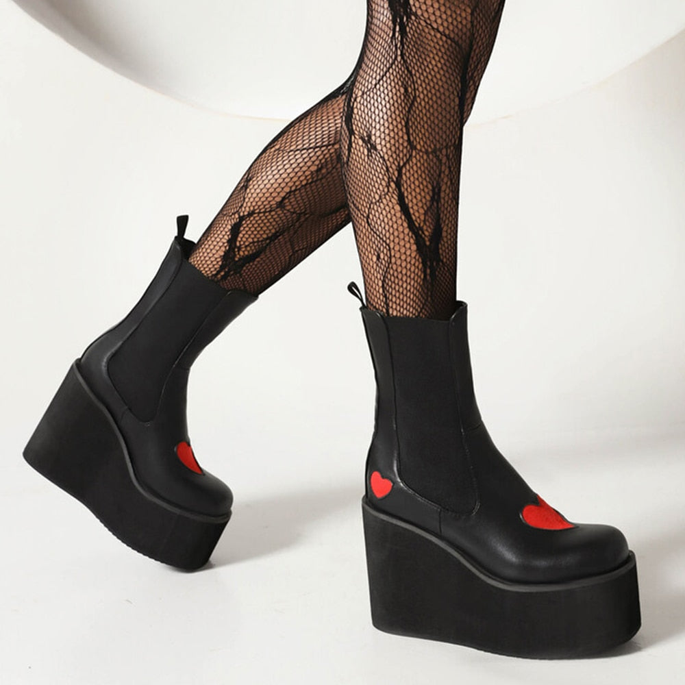 Express your individuality: With their contrast red heart pattern and elegant design, these ankle boots allow you to showcase your unique style and add a playful touch to your look.
