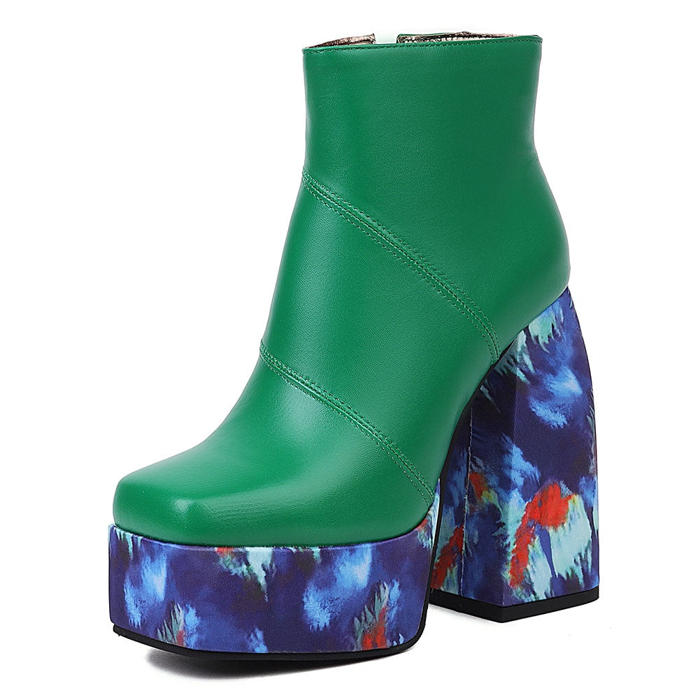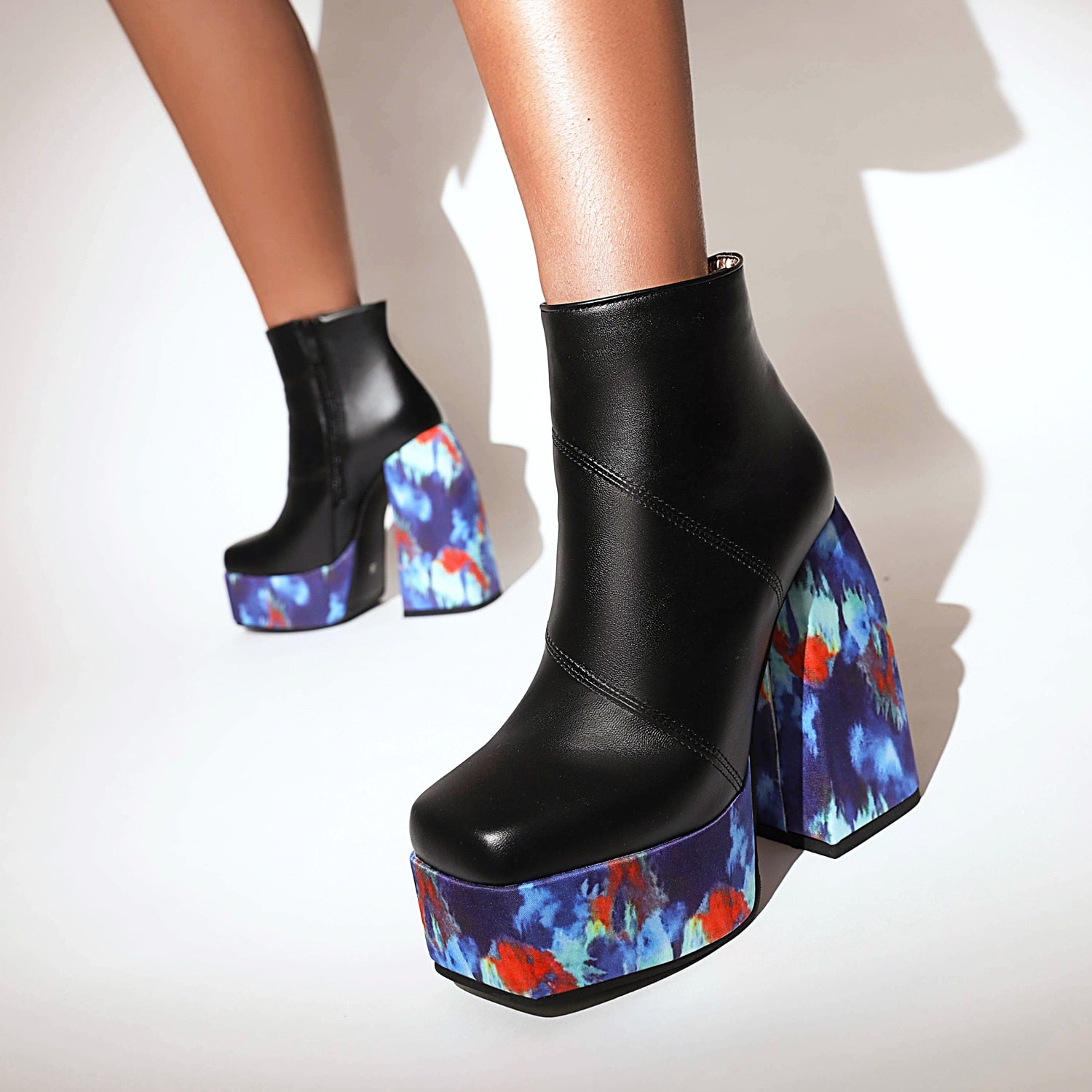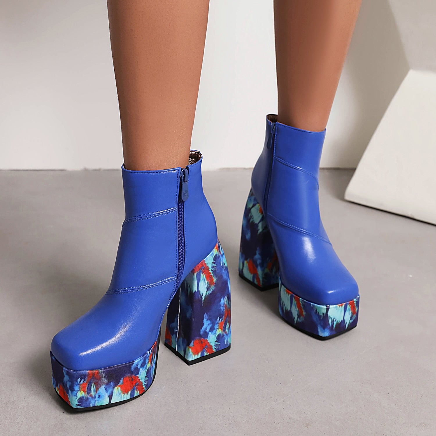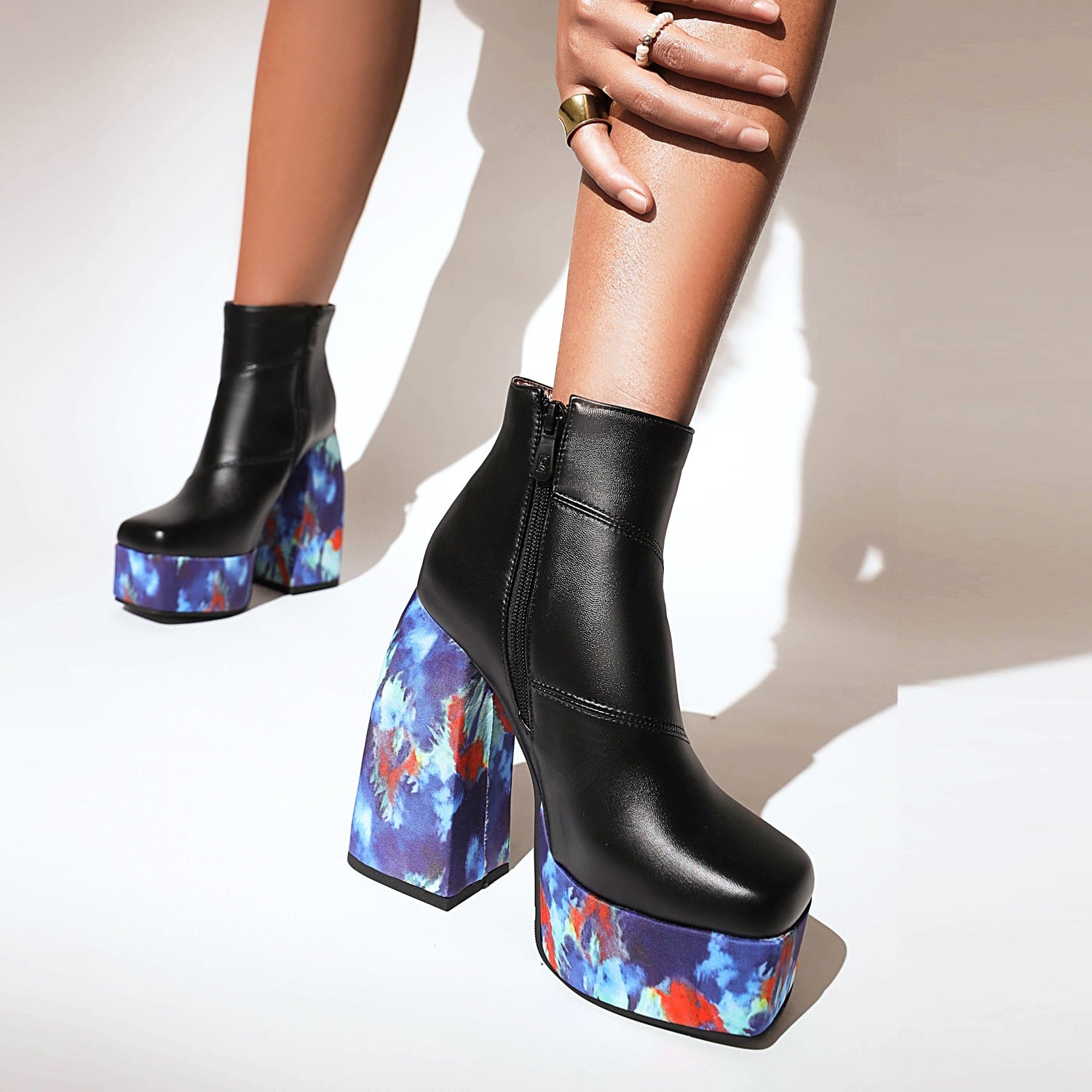 Make a bold fashion statement: With their contrast tie-dye pattern, high heel platform design, and vibrant colors, these ankle boots allow you to express your unique style and stand out from the crowd with confidence and flair.