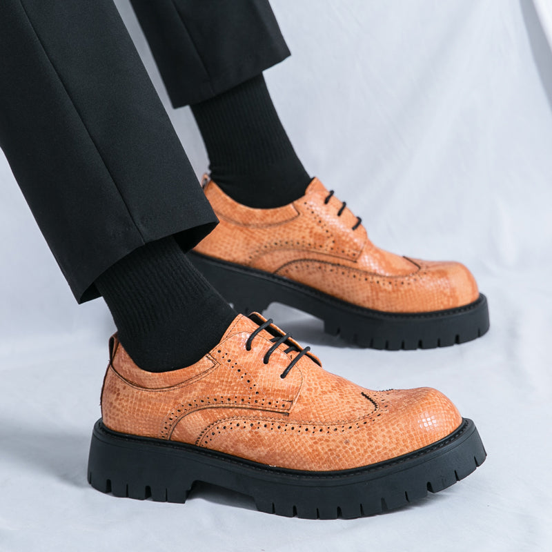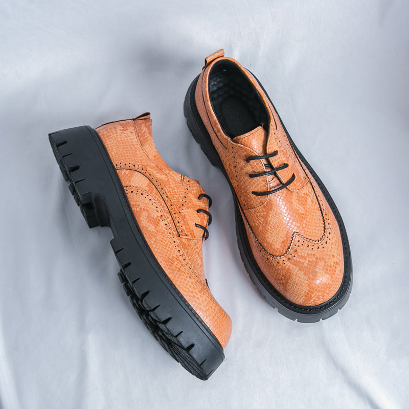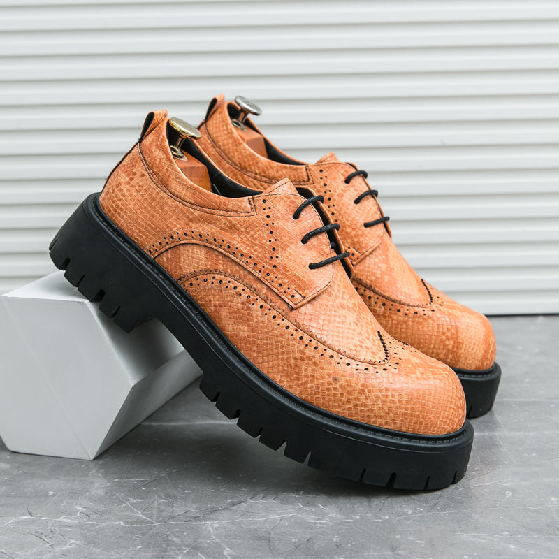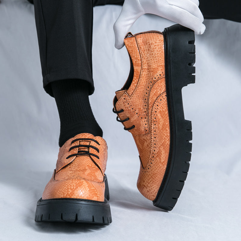 Elevate your wardrobe with the Oxford Derby Chunky Brogues, a seamless fusion of classic sophistication and modern flair. Designed for men who dare to stand out, these brogues showcase a striking faux snake-skin pattern, adding a textured, luxurious finish to your ensemble.