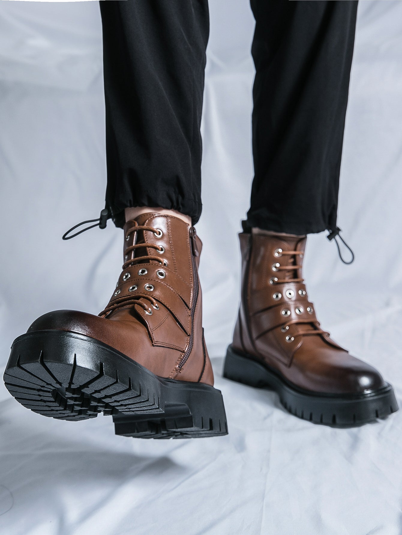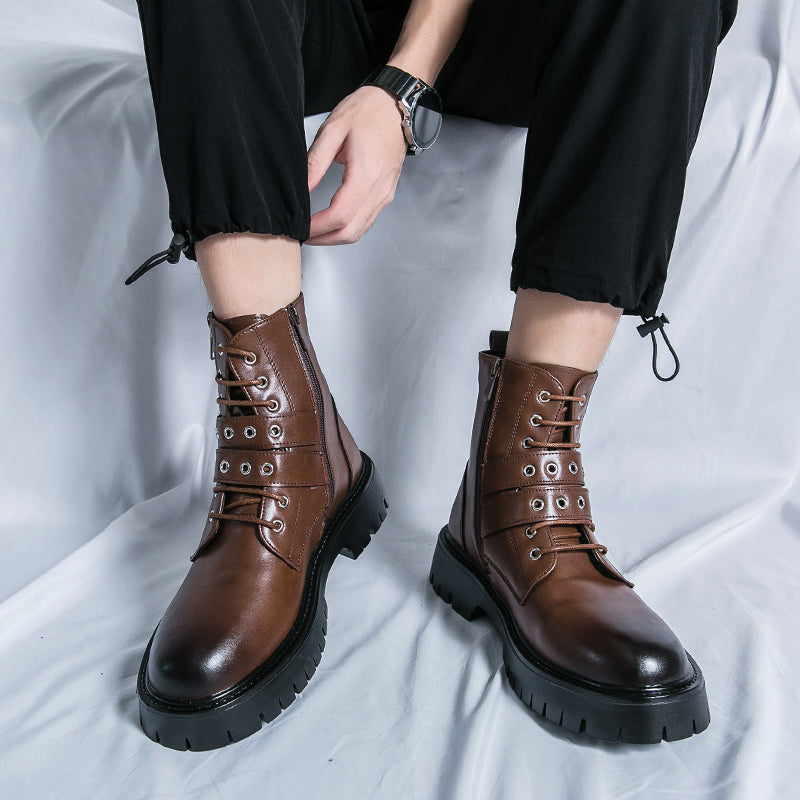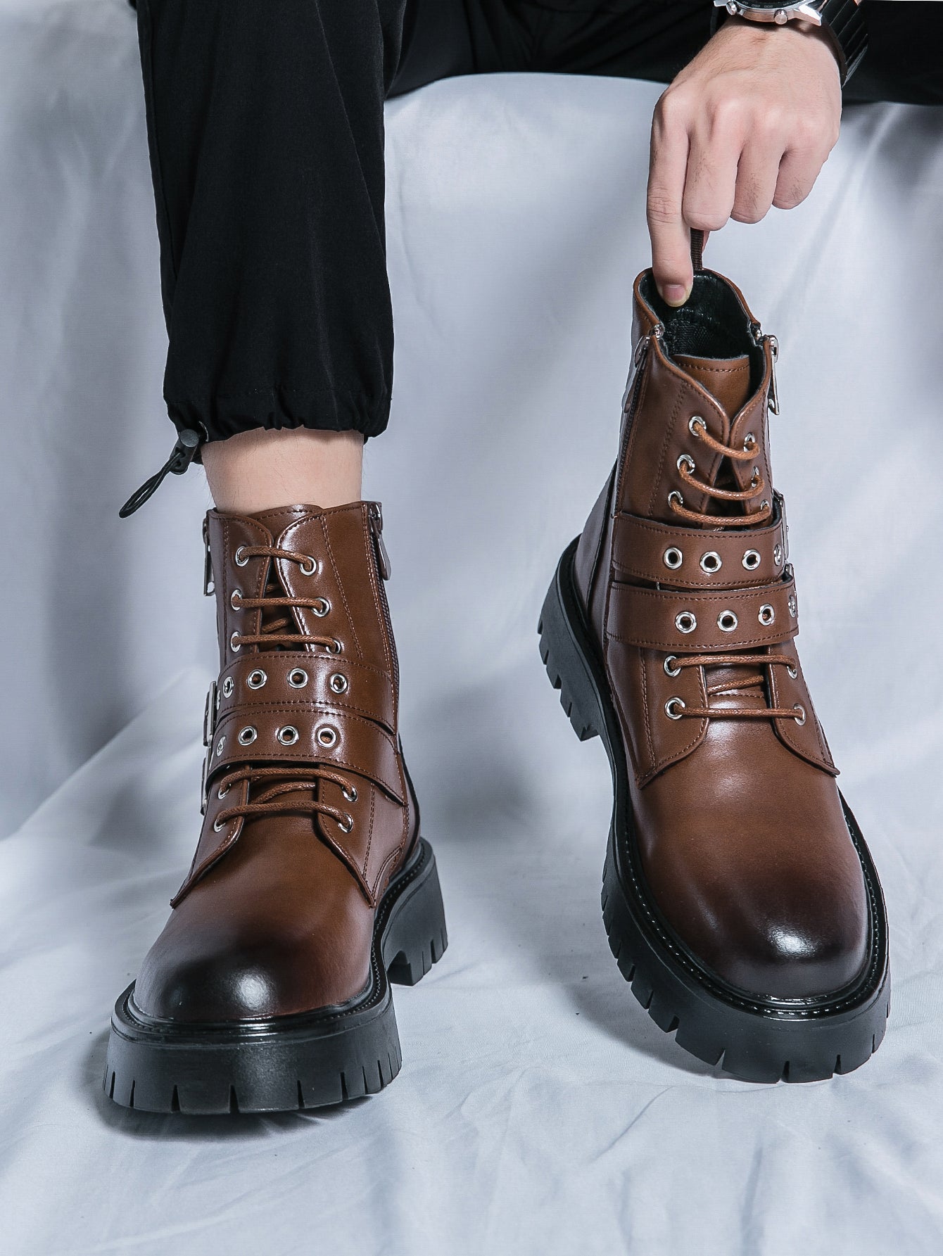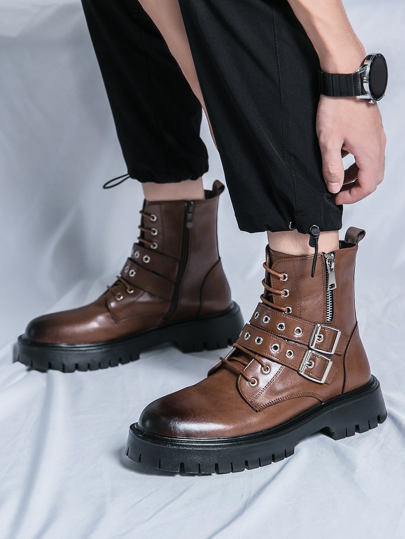 - Statement Design: Featuring double-buckle straps with polished metallic hardware, these boots redefine modern ruggedness while exuding masculine sophistication.