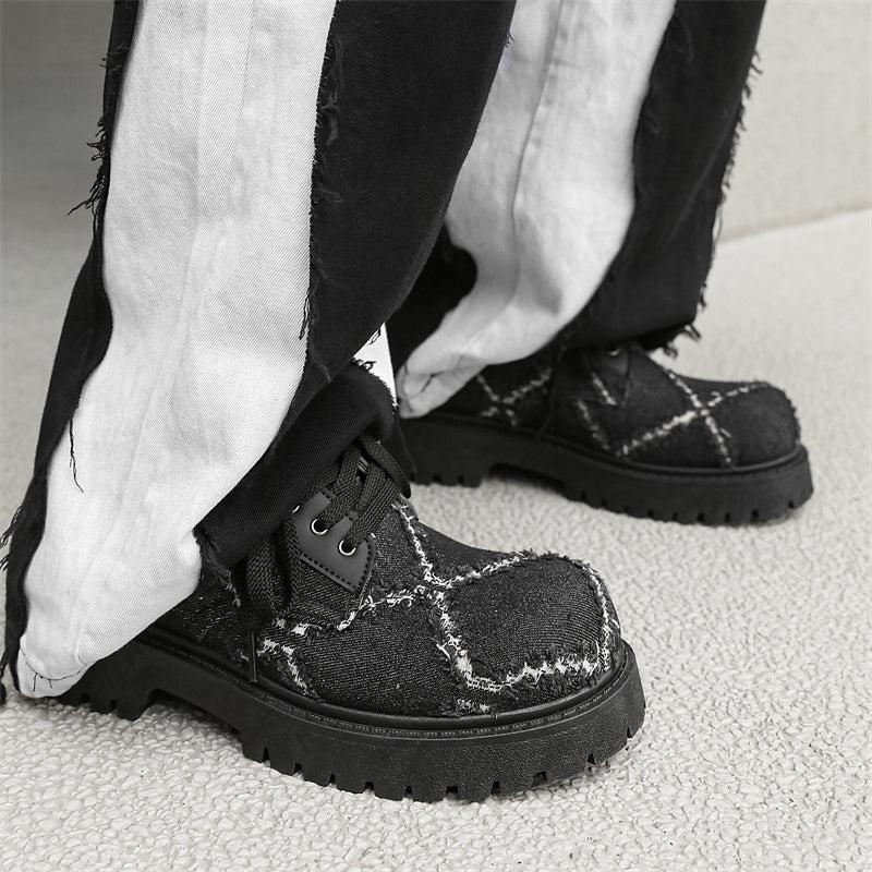 The Distressed Denim Derby Shoes are the perfect blend of contemporary street style and all-day functionality. Designed with a bold silhouette, these loafers redefine casual footwear for the modern man who dares to stand out. Crafted from high-quality distressed denim, the unique stitched patterns add an edgy texture that complements its raw, urban vibe.