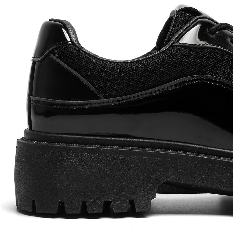 - Material: High-gloss patent leather upper with mesh paneling for texture and breathability.
