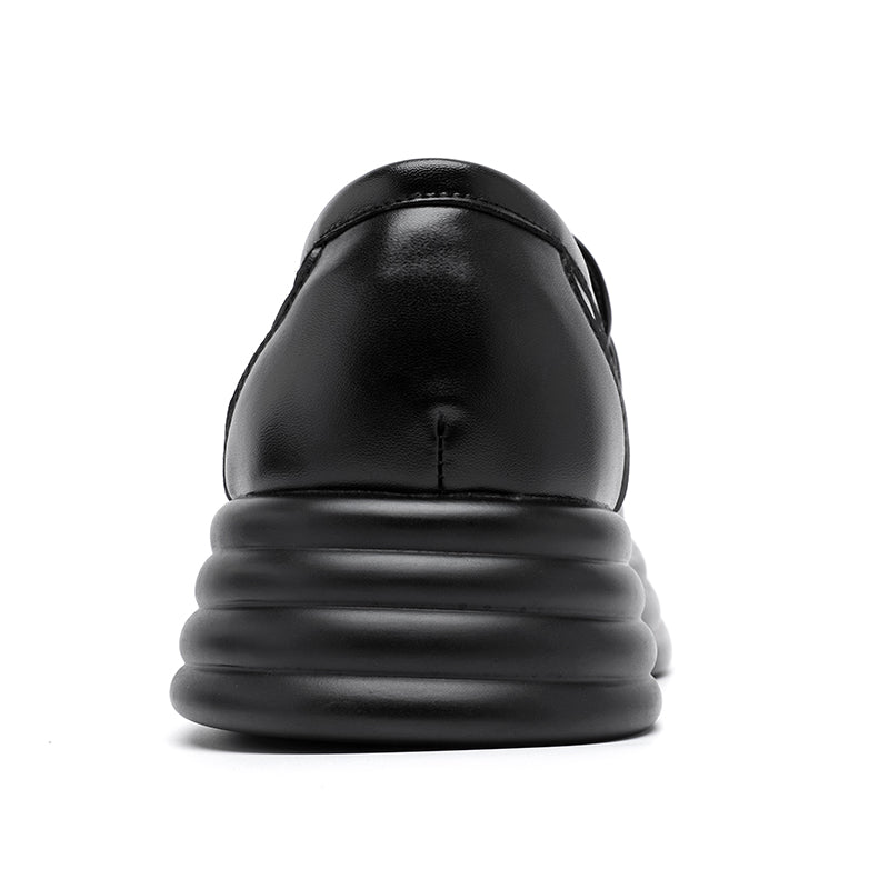 Step into sophistication with our Statement Loafers, a perfect blend of modern aesthetics and timeless design. These loafers feature a unique rippled outsole, offering both visual intrigue and enhanced comfort. Made with premium faux leather, they provide a luxurious finish that's durable and easy to maintain.