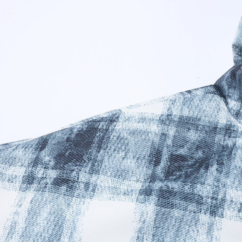 (A cool-toned plaid blend of frosted blue, soft grey, and white with a subtle washed texture, as shown in the reference images.)