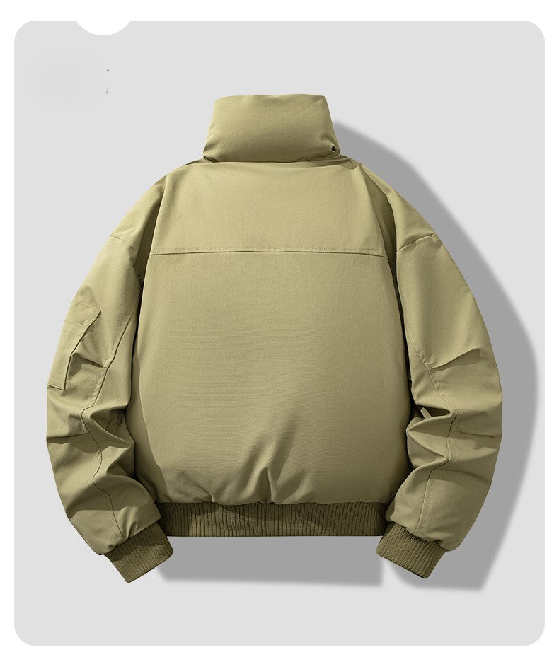 The Z709 stands out with its high-neck storm collar and reinforced paneled construction. It features a unique hybrid design combining the ruggedness of a bomber jacket with the loft of a premium puffer.