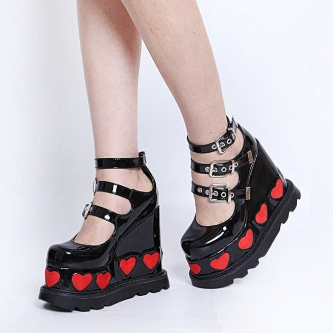 Express your individuality: The heart pattern, chunky sole, along with the buckle straps, adds a unique and personal touch to your style, allowing you to showcase your individuality and stand out from the crowd.